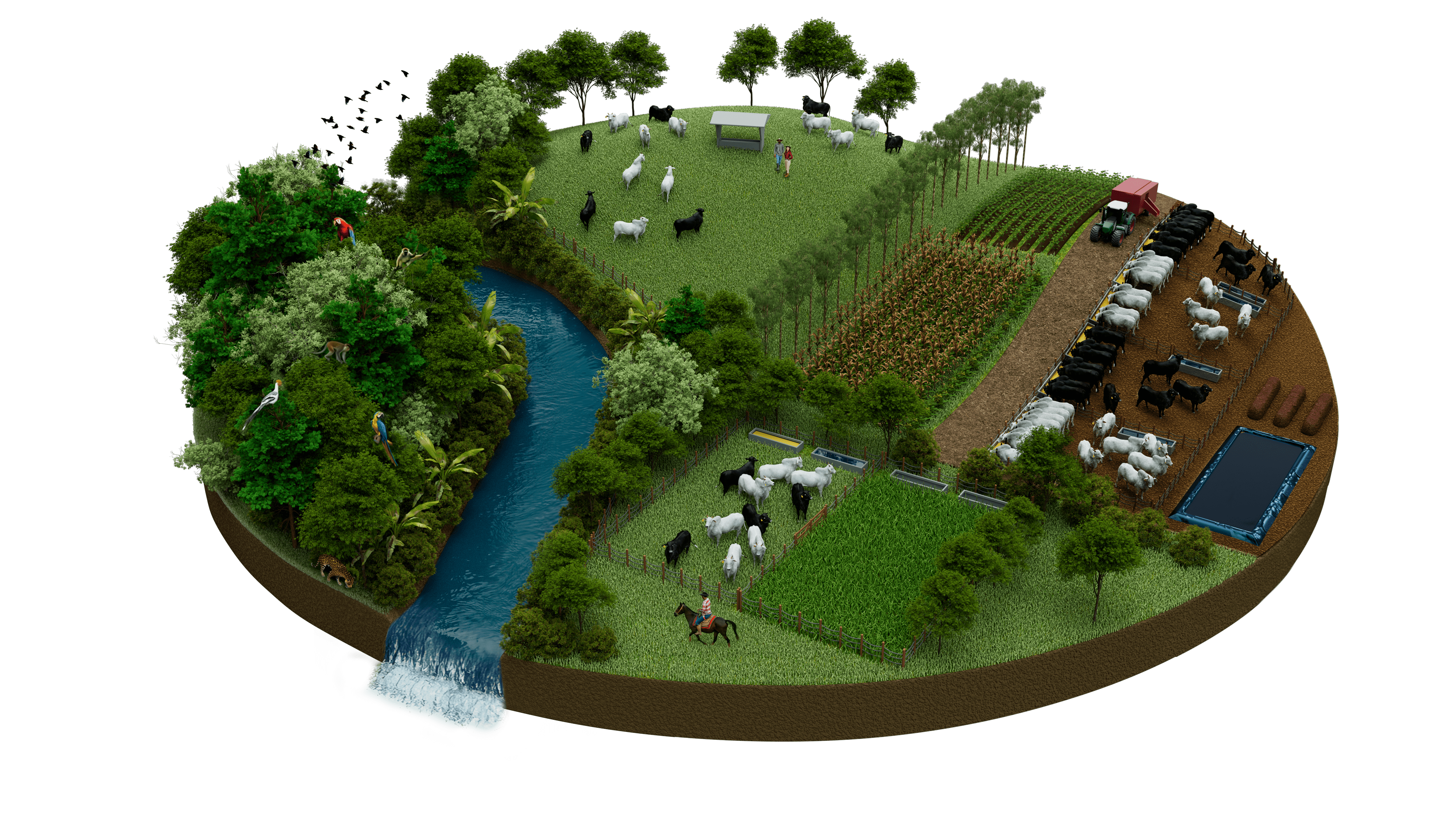 As práticas regenerativas na agropecuária fortalecem os serviços ecossistêmicos, contribuindo diretamente para a capacidade de retenção de água no solo, a proteção de corpos d’água e nascentes, e na preservação de florestas e da biodiversidade. Essas práticas aumentam a resiliência das áreas produtivas frente a adversidades climáticas, favorecem a integridade dos ecossistemas e promovem uma produção mais equilibrada com a natureza.
