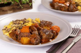 Assim que a carne e as batatas estiverem douradas, basta retirar do forno e servir!